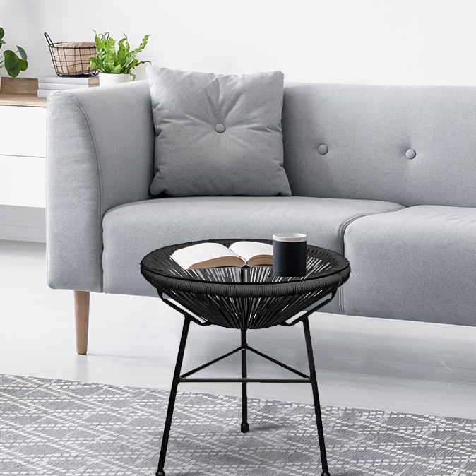 The glass is designed in such a way that it offers two surfaces to place coffee, a book or any other object of daily life.